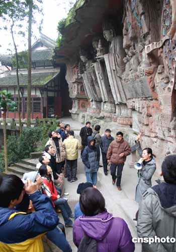 圖:臺灣大學生參觀世界文化遺產(chǎn)大足石刻