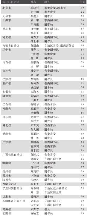 在國務院及地方部門中履職的女性高官一覽(圖表)