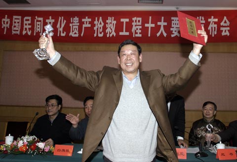 中新網(wǎng)北京1月29日電(張煒)27日,2003至2004年度中國民間文化遺產(chǎn)搶救工程十大新聞在北京揭曉。河南省全面實(shí)施民間文化遺產(chǎn)搶救工程、西部民歌搶救行動傳捷報(bào)、趙文瑄捐資百萬支持民間文化遺產(chǎn)搶救等被評為民間文化遺產(chǎn)搶救工程十大新聞。