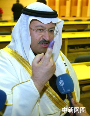 圖:伊臨時政府總統(tǒng)亞瓦爾在巴格達參加投票