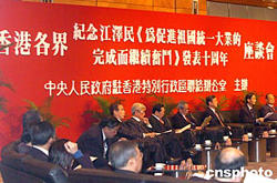 香港各界人士31日舉行紀(jì)念江澤民《為促進(jìn)祖國統(tǒng)一大業(yè)的完成而繼續(xù)奮斗》發(fā)表十周年座談會(huì)。作者:宋吉河