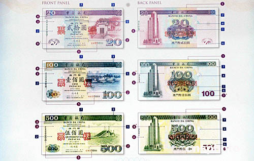 據(jù)悉,新版澳門幣與舊版紙幣相比,在保留了原來八項主要防偽特征的基礎(chǔ)上,增加了磁性微文字安全線、全息開窗安全線、白水印、凹印手感線、鈔票編號及熒光等。