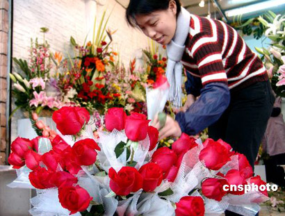 今年的情人節(jié)正值農(nóng)歷大年初六,泉州各花店都精心準備了玫瑰花。作者:石勇