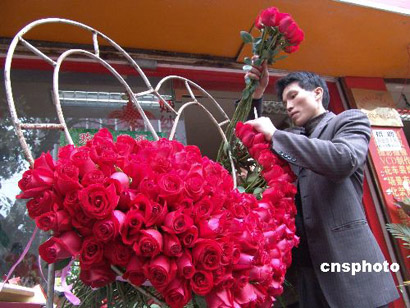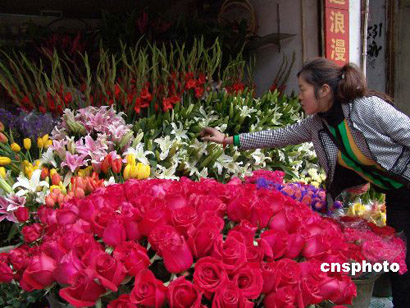 2月13日,永川花店員工積極儲備玫瑰花!扒槿斯(jié)”將到,重慶永川市內(nèi)的大小花店精心組織各品種的玫瑰花,以充足的貨源方便廣大市民挑選。作者:陳仕川