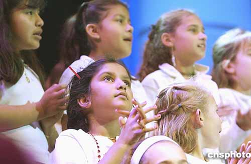 當(dāng)?shù)貢r(shí)間二十日晚,居于灣區(qū)的印度等各族裔的八十個(gè)團(tuán)體為幫助海嘯災(zāi)區(qū)賑災(zāi),在美國(guó)加州圣荷西惠普體育場(chǎng)舉行“萬(wàn)眾一心”籌款活動(dòng),三千人參加,募得款項(xiàng)超過(guò)一百萬(wàn)美金。圖為各族裔兒童合唱“世界兒童”。作者:陳鋼