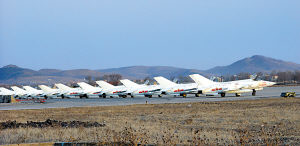 寂靜,沉悶的寂靜,仿佛在積蓄著一種無(wú)聲的力量?諘绲臋C(jī)場(chǎng),一排墨綠色的戰(zhàn)鷹劍指長(zhǎng)空,列陣待發(fā)。