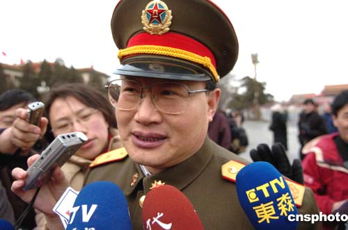 圖:解放軍軍械專家張卓在政協(xié)開幕會上接受采訪