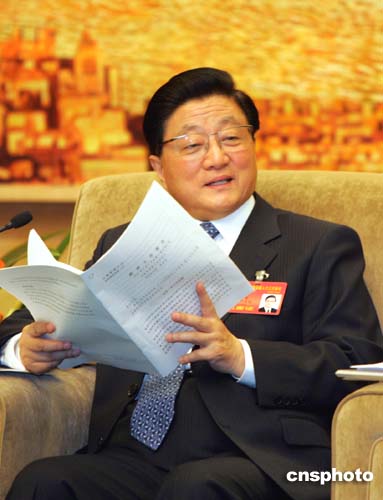 圖:黃菊與上海代表一起審議政府工作報告
