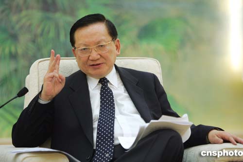 圖:唐家璇向臺(tái)灣人大代表介紹《反分裂國家法》