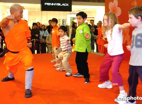 少林武術(shù)團(tuán)日前來(lái)香港表演時(shí),武教頭現(xiàn)場(chǎng)教練香港小朋友武功,以廣大中國(guó)傳統(tǒng)武術(shù),增進(jìn)兩地友情。作者:宋吉河