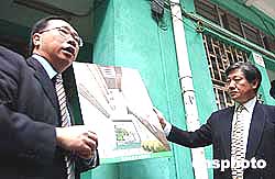 香港市區(qū)重建局18日宣布,準(zhǔn)備斥資1億元在灣仔茂蘿街展開(kāi)“舊區(qū)活化”項(xiàng)目,協(xié)助推進(jìn)文化創(chuàng)意產(chǎn)業(yè)發(fā)展。圖為官員向媒體展示重建后的藍(lán)圖。作者:譚達(dá)明