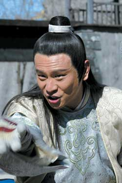 第一次出演清朝戲的張世,乍一看仿佛還是那個(gè)《粉紅女郎》中的色房東,不過(guò)張世自己卻不希望別人老記住他的一個(gè)角色,小眼睛一轉(zhuǎn):“其實(shí)這次接拍清裝戲,也就是為了給觀眾一個(gè)更加新鮮的形象!边@部《縣令黃馬褂》依然是輕喜劇,張世在戲里依然會(huì)展示他那讓人忍俊不禁的搞笑技藝。