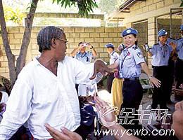 高曉嵐是防暴隊(duì)的女戰(zhàn)斗隊(duì)員,來自北京市公安局海淀分局,去年11月31日,她和十幾名隊(duì)員到駐地附近一家教會(huì)慈善學(xué)校和老人活動(dòng)點(diǎn),開展社區(qū)警務(wù)活動(dòng)。見到中國維和警察,老人們高興地鼓著掌、唱著歡快的歌迎接他們,蒙古族的高曉嵐為老人們動(dòng)情的歌聲所感染,不由自主地在歌聲中跳起了蒙古族舞蹈。這時(shí),一位老太太突然走出人群,一邊唱著一邊與她一起翩翩起舞。老人是那樣的熱情和奔放,她倆在周圍更加激越的歌聲和掌聲中忘我地跳著……
