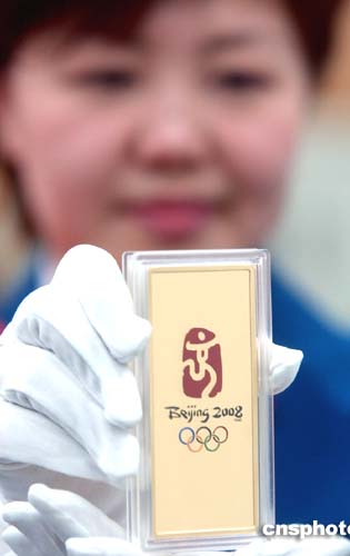圖:“北京奧運金”彩色系列第一組在北京發(fā)售