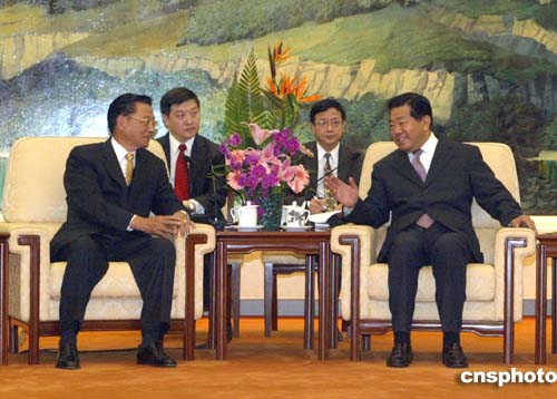 賈慶林在會(huì)見中國國民黨副主席、中國國民黨參訪團(tuán)團(tuán)長江丙坤一行時(shí),作以上表述。