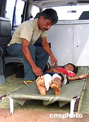 3月31日,印度尼西亞尼亞斯島地震災區(qū)的受傷災民陸續(xù)運到棉蘭軍用機場,分流到各急救站,傷況嚴重的災民,現(xiàn)場接受治療。作者:洪少葵