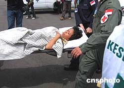 圖:尼亞斯島地震災區(qū)重傷員運到棉蘭