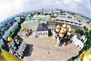攝像機(jī)在克里姆林宮上空俯拍這一事實(shí)本身就非同尋常。盡管克里姆林宮也對外開放,但游客們只能自由進(jìn)入兵器館、國立克里姆林宮、教堂廣場、教堂博物館,觀看“炮王”等景點(diǎn),其他地方不能接近,更不允許攜帶攝像設(shè)備。