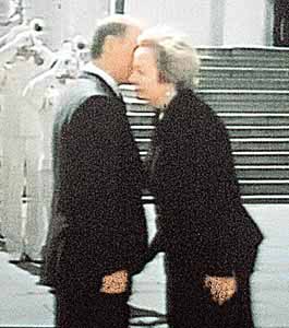 鏡頭三:這是普京夫婦,在盡量小聲地竊竊私語。他們什么話都沒說,但兩人的姿勢比任何話語都美觀,從這個(gè)創(chuàng)紀(jì)錄的鏡頭上可以清楚地看到這一點(diǎn)。