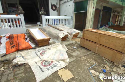 在印度尼西亞尼亞斯島災(zāi)區(qū),死尸挖掘出來(lái)后放在路旁,沒(méi)有及時(shí)運(yùn)走,散發(fā)惡臭,影響環(huán)境衛(wèi)生。作者:鄧慶樂(lè)
