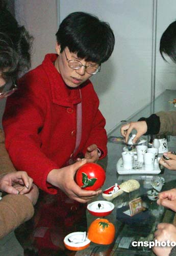 新近在上海著名的旅游風景區(qū)——浦東陸家嘴觀光隧道內,一種顯示男女歡愛動作的、號稱“嫁女壓箱底”之物的旅游紀念品吸引了游客視線,它也是正在該地舉行的“中華性文化展覽”紀念品之一。圖為兩位中年婦女正在精心挑選該旅游紀念品。作者:潘索菲