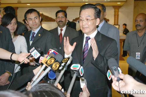 圖:溫家寶接受媒體采訪暢談訪印成果