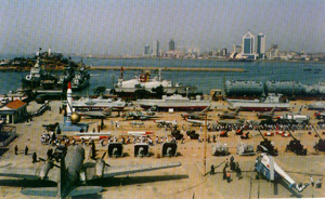 海上展艦區(qū)設(shè)在小青島連陸大堤的海灣內(nèi),那里停泊著退役的“長城號”潛艇、“鞍山號”導(dǎo)彈驅(qū)逐艦和“鷹潭號”航空導(dǎo)彈護衛(wèi)艦。鷹潭艦是我國第一代053K型艦對空導(dǎo)彈護衛(wèi)艦;鞍山艦是1954年我國從前蘇聯(lián)購進的第一批驅(qū)逐艦,此艦有著不平凡的經(jīng)歷,1936年建成,1941年編入蘇海軍太平洋艦隊,在第二次世界大戰(zhàn)中立下過赫赫戰(zhàn)功。