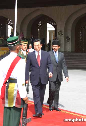 4月20日,文萊王宮舉行儀式歡迎胡錦濤來訪。作者:李靜