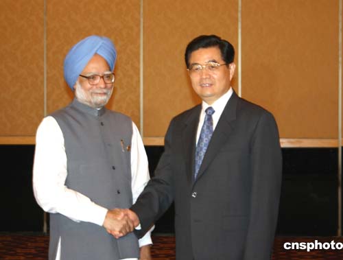 圖:中國國家主席胡錦濤會(huì)見印度總理辛格