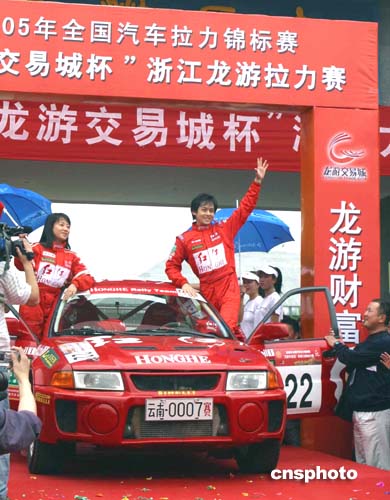 2005年全國(guó)汽車?yán)﹀\標(biāo)賽第二站比賽23日在浙江龍游舉行﹐來自國(guó)內(nèi)的20余支車隊(duì)﹑66輛賽車將在兩天內(nèi)的428.91公里的賽道上角逐﹐影視紅星林志穎加盟紅河車隊(duì)出戰(zhàn)。作者:趙振清