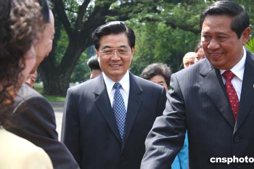 圖:胡錦濤與印尼總統(tǒng)蘇希洛舉行會談