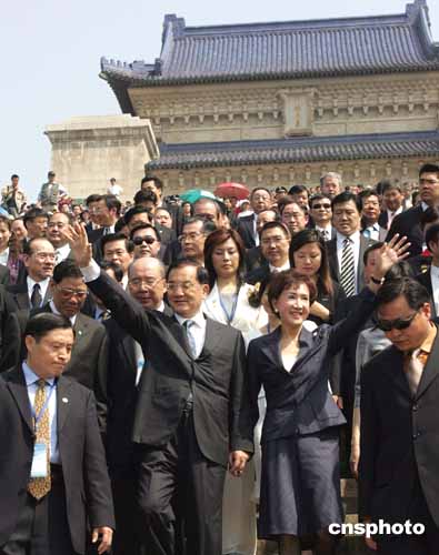 今天,得知連戰(zhàn)將率中國國民黨大陸訪問團在南京拜謁中山陵,近萬南京市民自發(fā)來到中山陵,歡迎連戰(zhàn)一行。