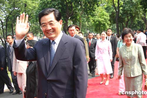 胡錦濤說,中方愿同菲方一道,積極建立中菲致力于和平與發(fā)展的戰(zhàn)略性合作關(guān)系,共同開創(chuàng)中菲關(guān)系更加美好的未來。