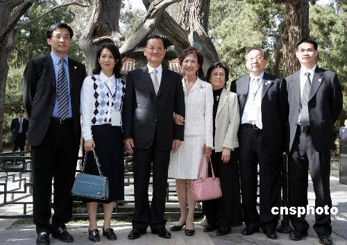中國國民黨主席連戰(zhàn)一行4月28日下午到北京故宮博物院參觀時(shí),與家人在御花園合影。作者:任晨鳴