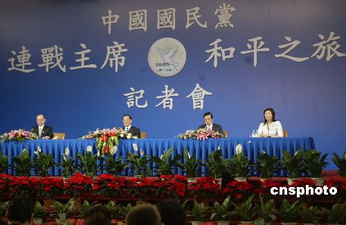 中新網(wǎng)4月29日電 在與中共中央總書記胡錦濤會(huì)晤后,中國國民黨主席連戰(zhàn)在今日(29日)下午17時(shí)35分左右,在北京飯店舉行了一場(chǎng)記者招待會(huì),就會(huì)晤內(nèi)容和共識(shí)回答中外記者提問。