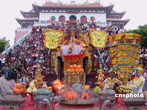 獨(dú)具特色、內(nèi)涵豐富的媽祖文化,對(duì)世界華人華僑具有很強(qiáng)的凝聚力,兩億多信眾遍布世界各地,尤其在臺(tái)灣,媽祖信眾占其總?cè)丝诘娜种?/p>