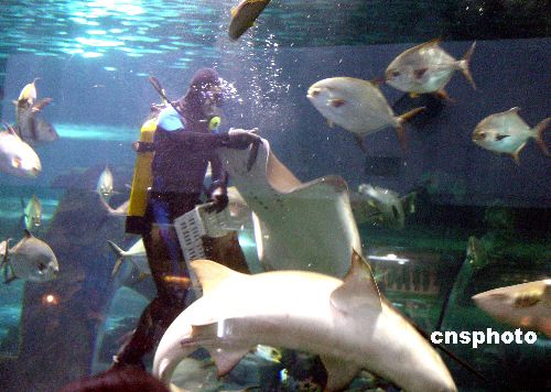 2005年5月6日,秦皇島新澳海底世界成為今年秦皇島“五一”黃金周海洋旅游線路的一處亮點,每天下午的喂鯊魚表演,吸引了來自東北、唐山、天津、北京等地游客的目光。作者:李佳明
