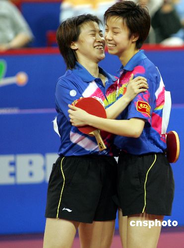 圖:王楠、張怡寧獲世乒賽女雙冠軍