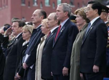 在世界反法西斯戰(zhàn)爭勝利六十周年之際,世界各地舉行了各種慶祝儀式,其中尤以今天在此間舉行的俄羅斯紀(jì)念衛(wèi)國戰(zhàn)爭勝利六十周年慶典最為隆重,包括中國國家主席胡錦濤在內(nèi)的世界五十多個(gè)國家的元首、政府首腦和國際組織代表出席了在紅場舉行的慶典活動。