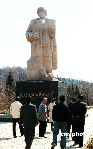 圖:楊靖宇雕像吸引參觀者