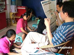 5月19日,重慶榮昌市民在某擦鞋連鎖店里接受擦鞋服務(wù)時(shí)閱讀報(bào)紙。據(jù)了解,該擦鞋連鎖店經(jīng)營(yíng)者不僅將“一元錢擦鞋”的小生意開成連鎖店,還在店內(nèi)為顧客提供茶水、報(bào)刊閱覽等免費(fèi)服務(wù)。增添文化內(nèi)涵“連鎖擦鞋”受到市民的歡迎,每天顧客絡(luò)繹不絕。作者:朱蕓鋒