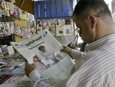 5月21日的英國《太陽報》再次刊登了薩達姆在獄中的照片,圖為伊拉克的報亭出售刊有相關(guān)圖片的報紙。 (春風(fēng))