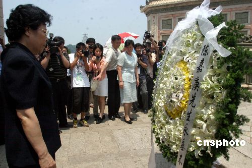 五月二十二日,國務院僑辦主任陳玉杰、副主任許又聲和參加第三屆世界華僑華人社團聯誼大會“海峽西岸行”的代表向陳嘉庚陵墓敬獻花圈。作者:張勤