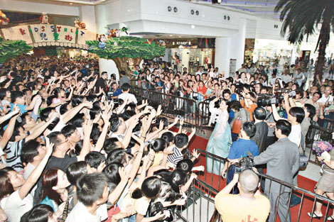 為了一睹大長(zhǎng)今真正風(fēng)采,昨早清晨四時(shí)許已有巿民到商場(chǎng)排隊(duì),無(wú)線在四十五分鐘內(nèi)已將三百五十個(gè)籌派完,更印制了五千把紙扇派給巿民。答謝會(huì)在下午三時(shí)舉行,愈近舉行時(shí)間巿民愈多,到下午一時(shí),商場(chǎng)甚至封鎖地下至一樓的自動(dòng)電梯及部分出口,防止人流繼續(xù)涌入。到二時(shí)至三時(shí),更是人流的最高峰。為確保李英愛(ài)的安全,無(wú)線派出了20多名保安,聯(lián)同商場(chǎng)方面的八十名保安,一起在場(chǎng)維持秩序,商場(chǎng)亦同時(shí)知會(huì)荃灣警署,慎防意外發(fā)生。