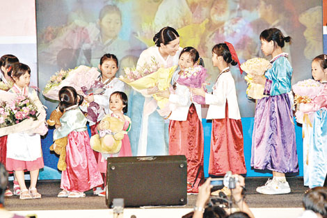 萬(wàn)眾期待的李英愛(ài),身穿韓服于三時(shí)十五分到場(chǎng),現(xiàn)場(chǎng)觀眾紛紛站起來(lái),搖著手上的紙扇歡迎她,又以韓文高呼“我愛(ài)你”。她走紅地氈進(jìn)場(chǎng)時(shí),除了一直保持笑容,還向觀眾揮手及握手,令觀眾情緒十分高漲。她在后臺(tái)逗留了十分鐘,到三時(shí)廿五分才上臺(tái),即時(shí)以廣東話向現(xiàn)場(chǎng)巿民打招呼:“大家好,你好嗎?我系李英愛(ài)。”全場(chǎng)立時(shí)歡呼,她繼而用韓文道:“多謝大家在這里,希望大家學(xué)大長(zhǎng)今的精神,祝大家健康快樂(lè)。”她又說(shuō)好開(kāi)心跟大家近距離親密接觸,希望大家繼續(xù)愛(ài)她支持她,又以廣東話說(shuō):“多謝!多謝!”