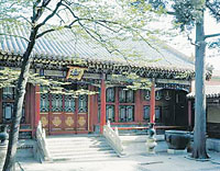 倦勤齋位于寧壽宮花園的最北端,面積幾百平方米。清乾隆三十七年(1772年)仿建福宮花園中的敬勝齋而建!熬肭邶S”取“耄期倦于勤”之意,顯示這里是太上皇的憩息之所。它室內(nèi)頂棚及西墻、北墻上滿繪的圖畫被稱為“通景畫”,是由歐洲傳教士畫家郎士寧借鑒了歐洲教堂中的天頂畫和全景畫的形式而移植于清代宮廷內(nèi)的。(楊玉峰)