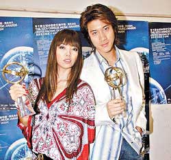 中新網(wǎng)5月24日電 據(jù)光華日報報道,第16屆金曲獎頒獎典禮將在28日舉行,Hit FM聯(lián)播網(wǎng)公布由網(wǎng)友票選的‘預測得獎’,緋聞情侶王力宏、張惠妹(阿妹)同時被選為‘金曲歌王、歌后’,F(xiàn).I.R.是最大遺珠。金曲頒獎人底定,若阿妹得歌后,將從頒獎人王力宏手中拿獎座,話題十足。