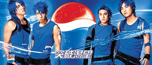 而百事發(fā)言人表示,F(xiàn)4剛剛拍完的電視廣告都是戴藍色假發(fā),因為電視畫面是動的,戴假發(fā)都沒問題,但因今次拍硬照質(zhì)感很細致,他們一定要染發(fā),雖然頭發(fā)會受損,但F4好有專業(yè)精神,從沒怨言。
