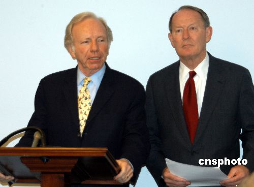 | 曾在去年競(jìng)選總統(tǒng)的美國(guó)參議員利伯曼(左)與另一名參議員亞歷山大(右),25日聯(lián)合提出旨在促進(jìn)美中交流的“美中文化接觸法案”議案。他呼吁在國(guó)際事務(wù)中視中國(guó)為盟友,在商業(yè)活動(dòng)中待中國(guó)為伙伴,加強(qiáng)與中國(guó)的接觸和交流,美國(guó)才會(huì)擁有燦爛的未來。作者:余東暉