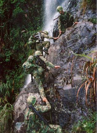 福州某地獅子嶺,自古就是一處險要,山高石滑,人煙稀少,荊棘遍布,毒蟲聚集,野獸出沒……初夏時節(jié),筆者跟隨駐閩某特種偵察分隊官兵,歷時三天三夜,輾轉(zhuǎn)100多公里,方才見識了什么叫做野戰(zhàn)的“魔鬼訓(xùn)練”。